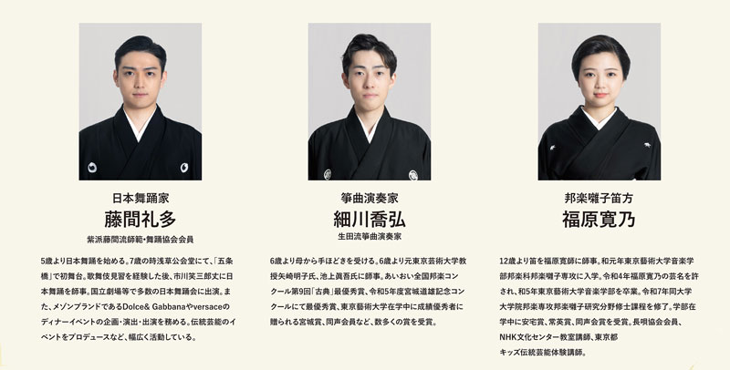 日本舞踊の美しい所作と箏・笛の生演奏が織りなす、新春にふさわしい華やかなひとときをお届けいたします。