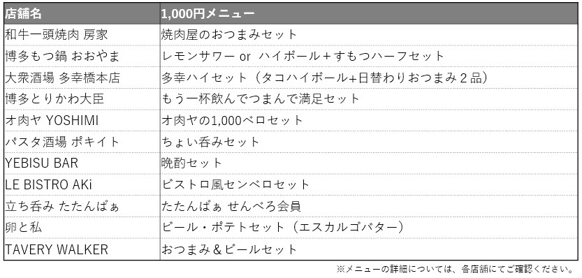 ワンビル地下1階の各店自慢のメニューが、18時からのディナータイム限定で再登場。夜の天神、18時からのワンビル。 お仕事帰りの一杯や、大切な人との語らいに。 1,000円で「もう一品・もう一杯」の贅沢をワンビルで愉しみませんか?