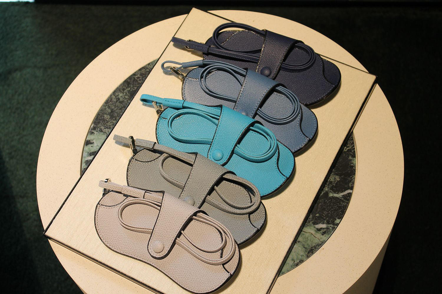 「ストラップ付きメガネケース」などのスモールレザーグッズは、ファッションの一部として楽しめると大人気。さらに、近年は再生素材を使用した新モデルも展開され、軽やかな使い心地と〈Valextra〉らしい美しさを両立したアイテムに出会えます。店頭のところどころに現れるユニークでキュートなチャームは、立体成形と丁寧なステッチで仕上げられ、職人たちの細やかな技がキラリ。装いにさりげない遊び心を添えてくれます。