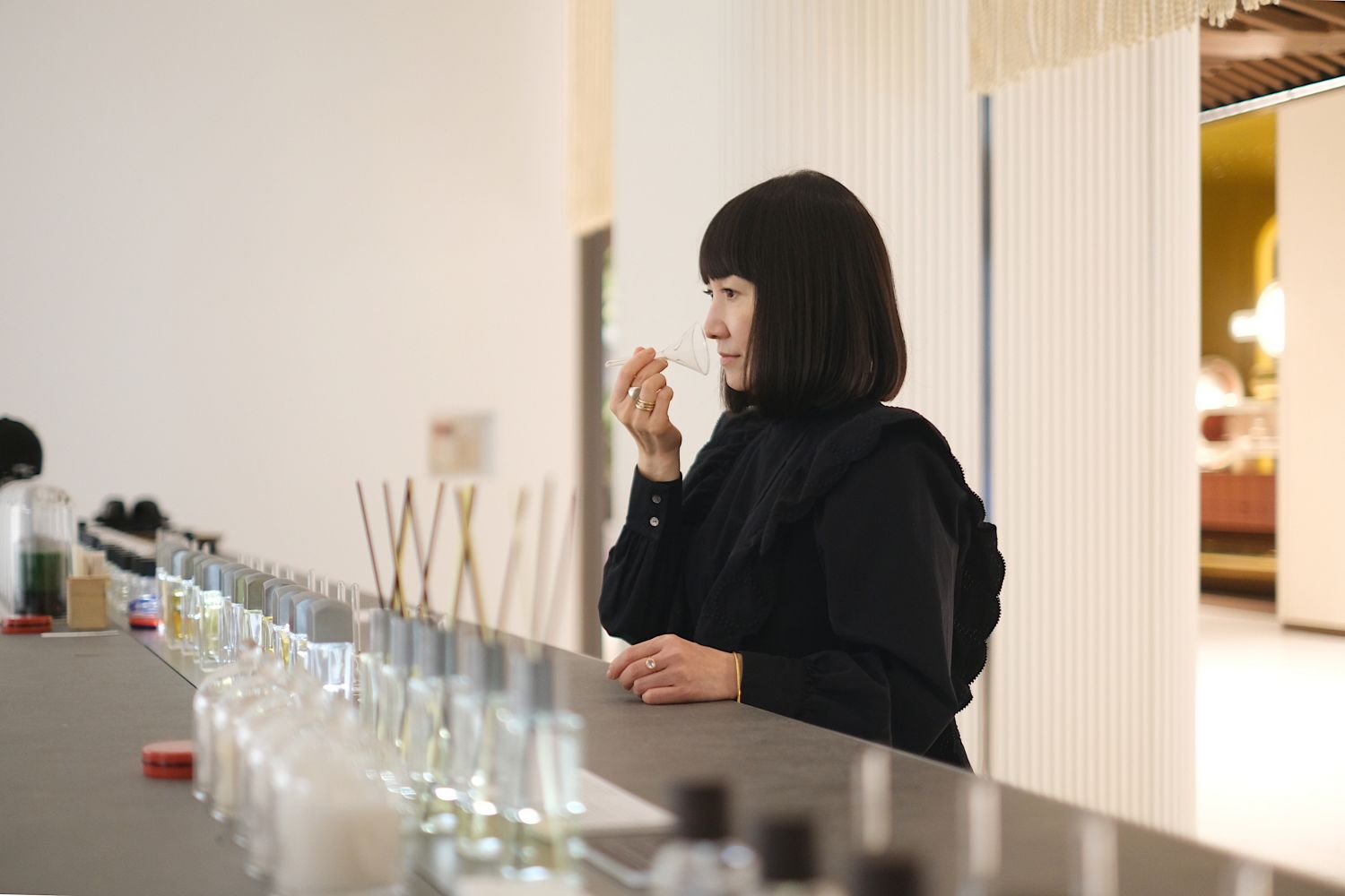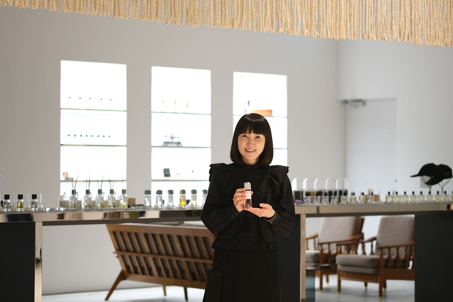 一見、朱肉と香水はまったく別の世界のように思えますが、実は捺印とフレグランスは“アイデンティティを印(しる)す”という共通項によって結ばれているのです。「朱肉で捺す印が自分を印す証となるように、香りもまた、その人の個性やアイデンティティを表現する大切なエレメント。朱肉づくりの歴史や技術を継承し、纏った香りがその人自身の一部となるよう、一つひとつの香りから佇まいのディテールに至るまで、こだわりを尽くしています」と、店長の梅田さんは語ります。