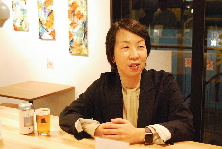どんなビールを創ろうとしているのか…?試飲するオフィスワーカーたちをドキドキした表情で見つめていた、プロジェクトメンバーの西鉄・天神開発本部福ビル街区開発部の徳久愛子さんに話を聞いた。