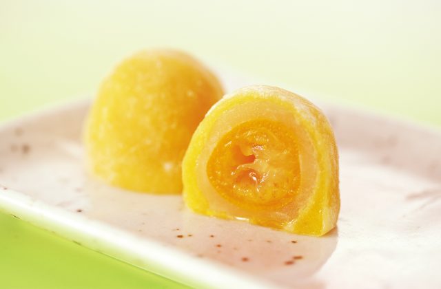 刻み栗入りの柔らかな求肥で、小豆のつぶ餡をお包みしました。