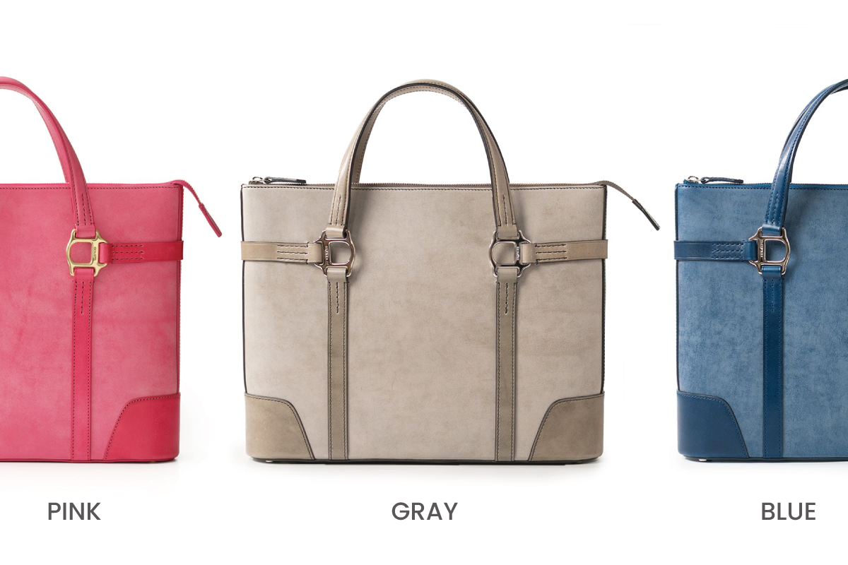 ソメスが製作する馬具のひとつ“無口頭絡”の金具がポイントの「スクエア」シリーズ。