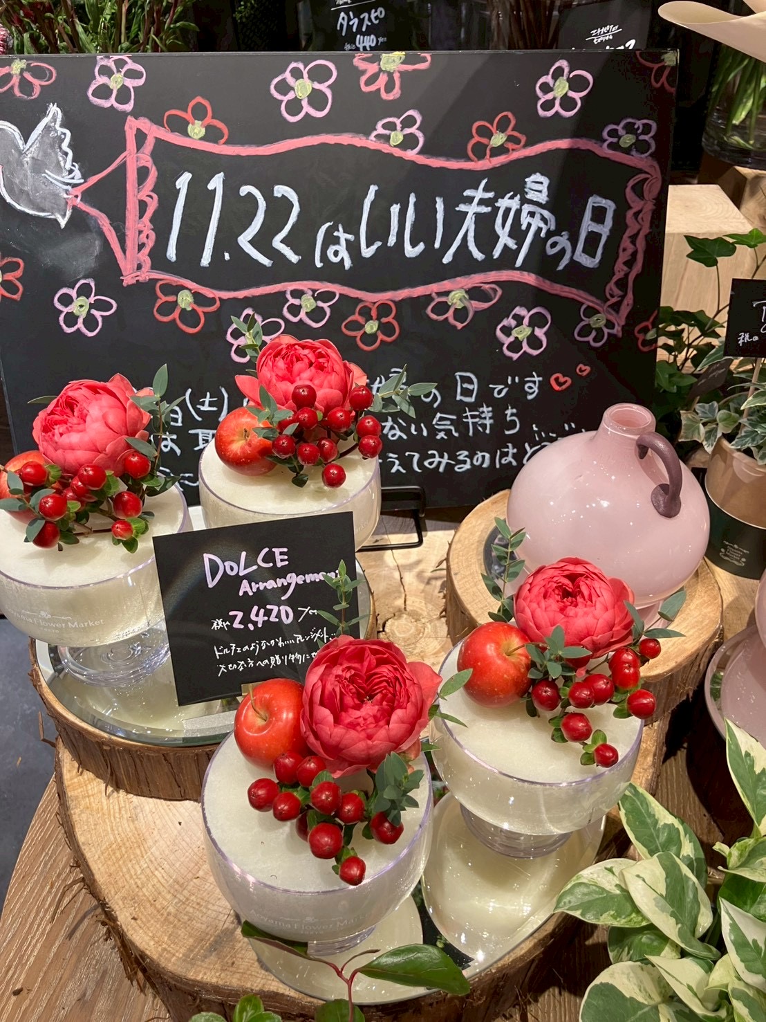 本日、11月22日は「いい夫婦の日」 日々の生活の中でなかなか伝えられない 「ありがとう」や「これからもよろしく」の言葉を お花と一緒にお伝えしませんか。 青山フラワーマーケットでは こんな日にぴったりな お花をご用意しております🌹