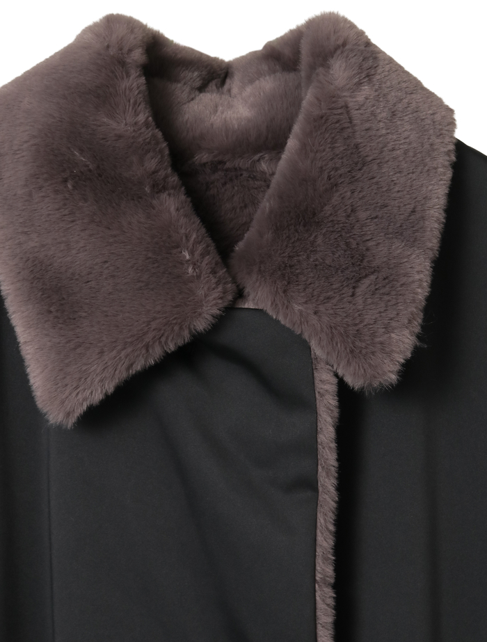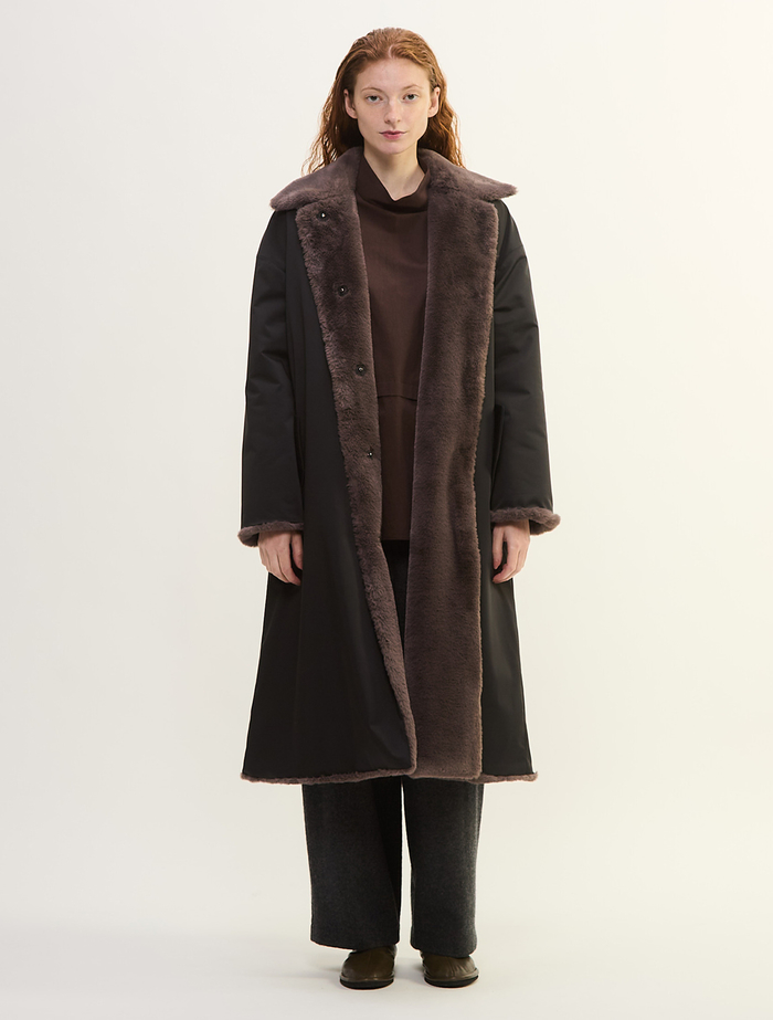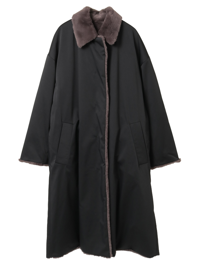 プレインピープルでは、ロングなのに軽くしかもリバーシブルエコファーコートが入荷してきました。 ポリエステルの撥水タフタとエコファーをリバーシブルに仕立てた迫力のある一枚です。 カジュアルにもモードにもお召しいただけます。 タフタへフッ素フリー撥水で花粉ガードも搭載した機能素材を採用しています。 是非、店頭で感触を味わってみて下さいませ。
