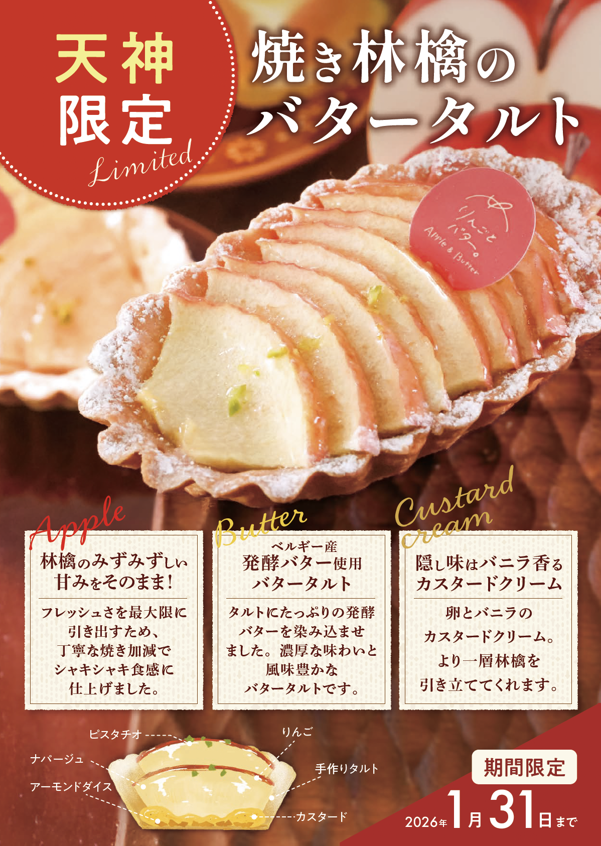 「りんごとバター。Lab」では、2025年12月12日(金)より、期間・数量限定で「焼き林檎のバタータルト」を販売いたします🍎🧈