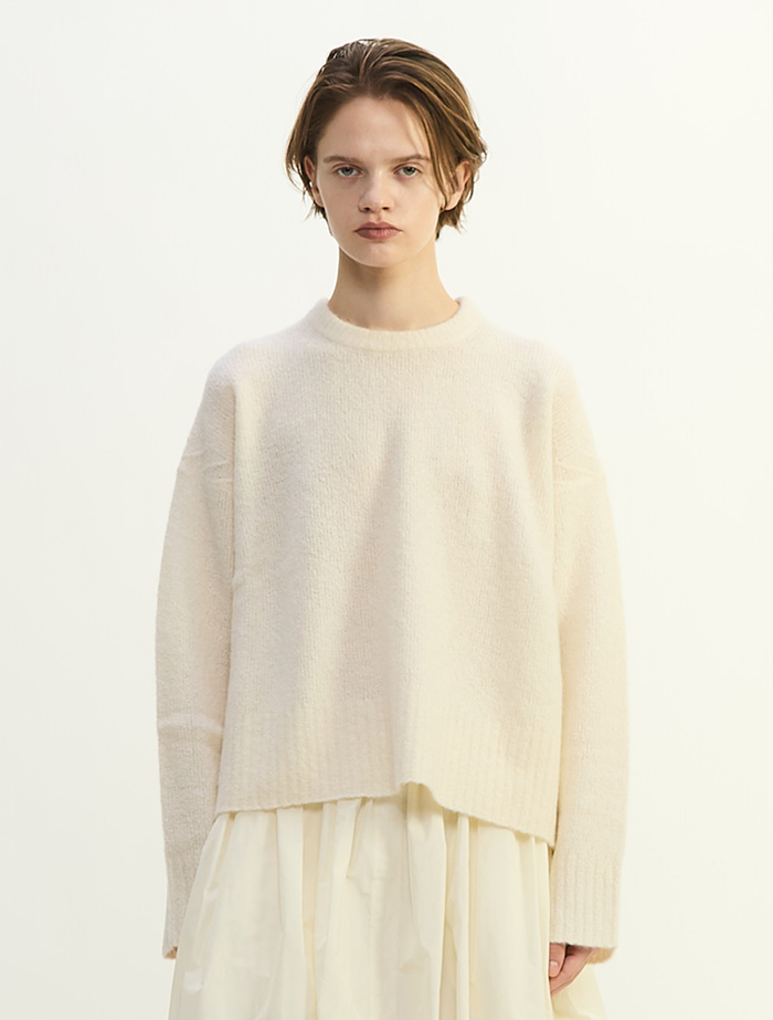 明けましておめでとうございます。 新作ニットはとても軽くて暖かく、カシミヤ混でスポンディッシュな風合いの糸を使用した短め丈のプルオーバーです。 サイドには斜め柄を施しポイントにしています。 本年もスタッフ一同よろしくお願いいたします。