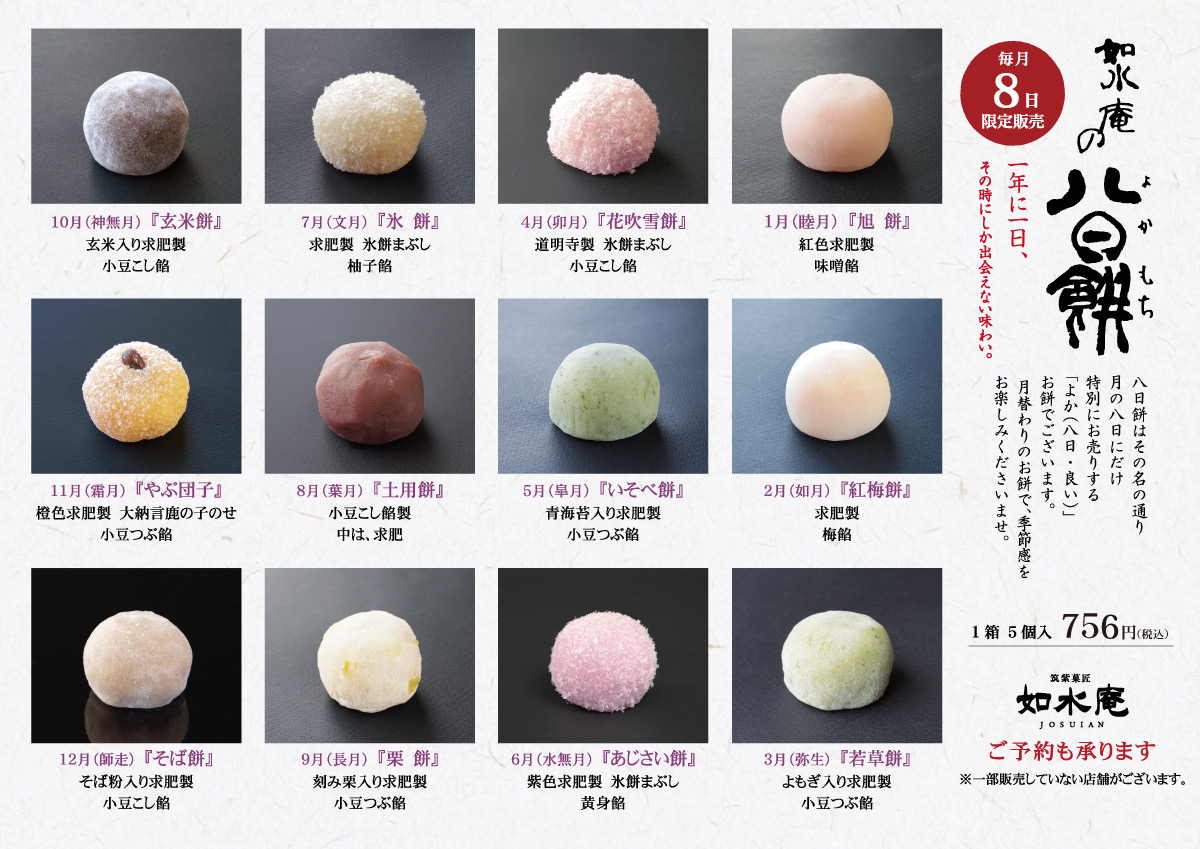 八日餅は月ごとにお味が変わるため、いずれも年に一度の特別な出会いです。