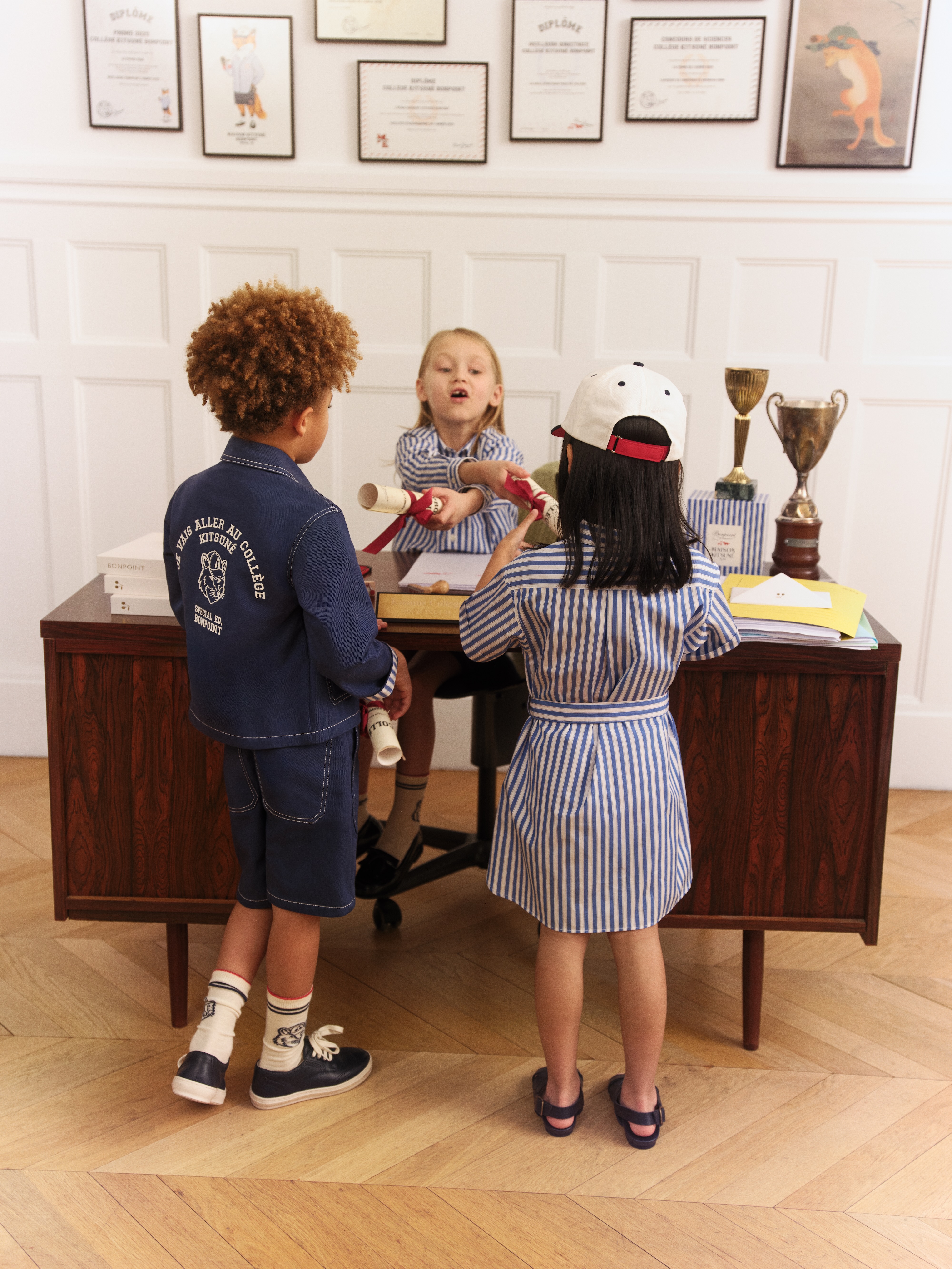 本コレクションは、新生児から14歳までのベビー・キッズを対象とし、ボンポワンの卓越した職人技とメゾン キツネのシグネチャーである遊び心を融合させています。