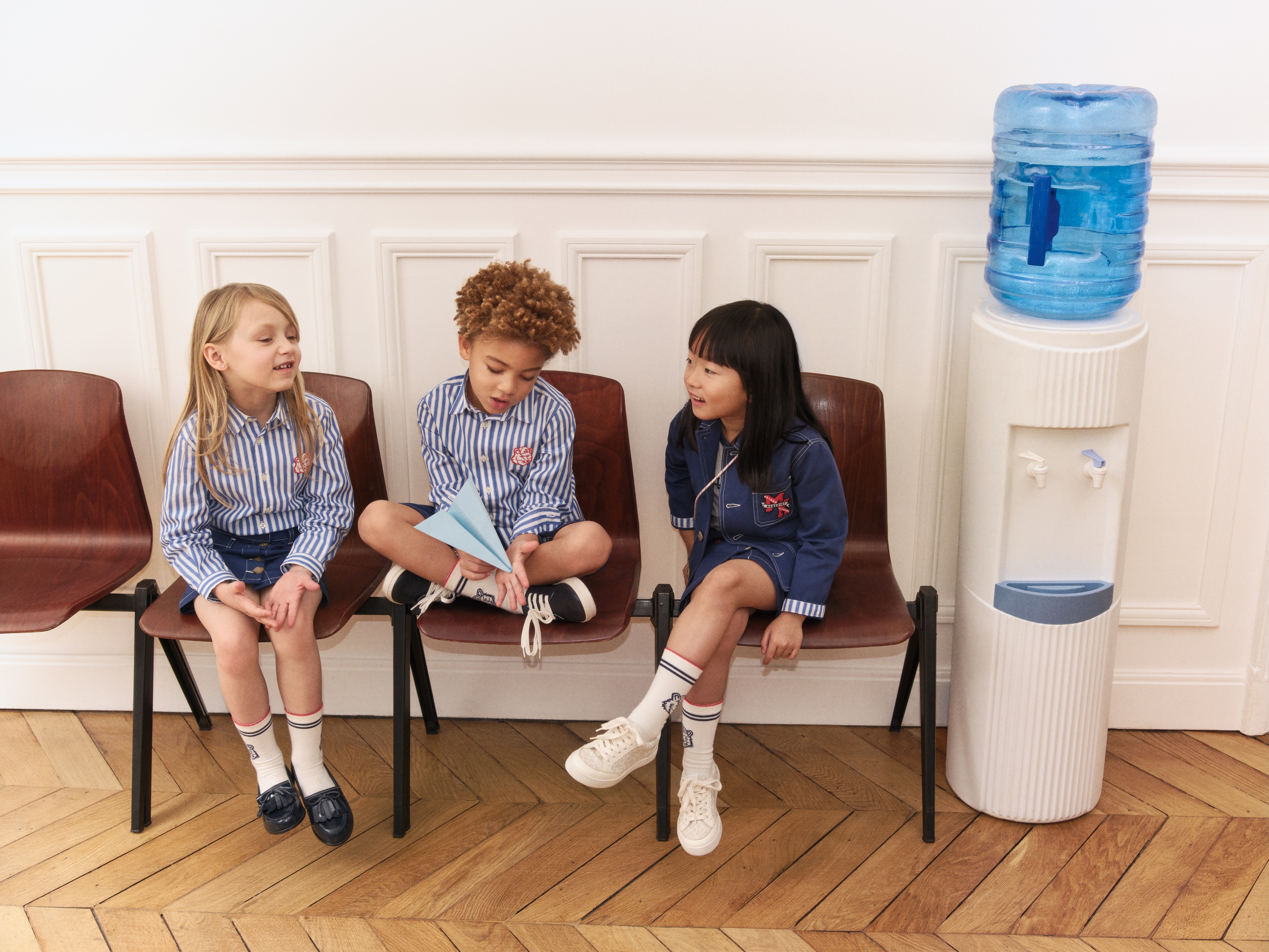 儚く咲く桜の花から着想を得た本コレクションは、パリと東京を散策するようなやさしい世界観を表現しています。ボンポワンの控えめで洗練されたエレガンスと、メゾン キツネの遊び心あふれるスピリットが融合し、遊び心、子どもらしさ、そしてタイムレスなスタイルを表現するワードローブが誕生しました。