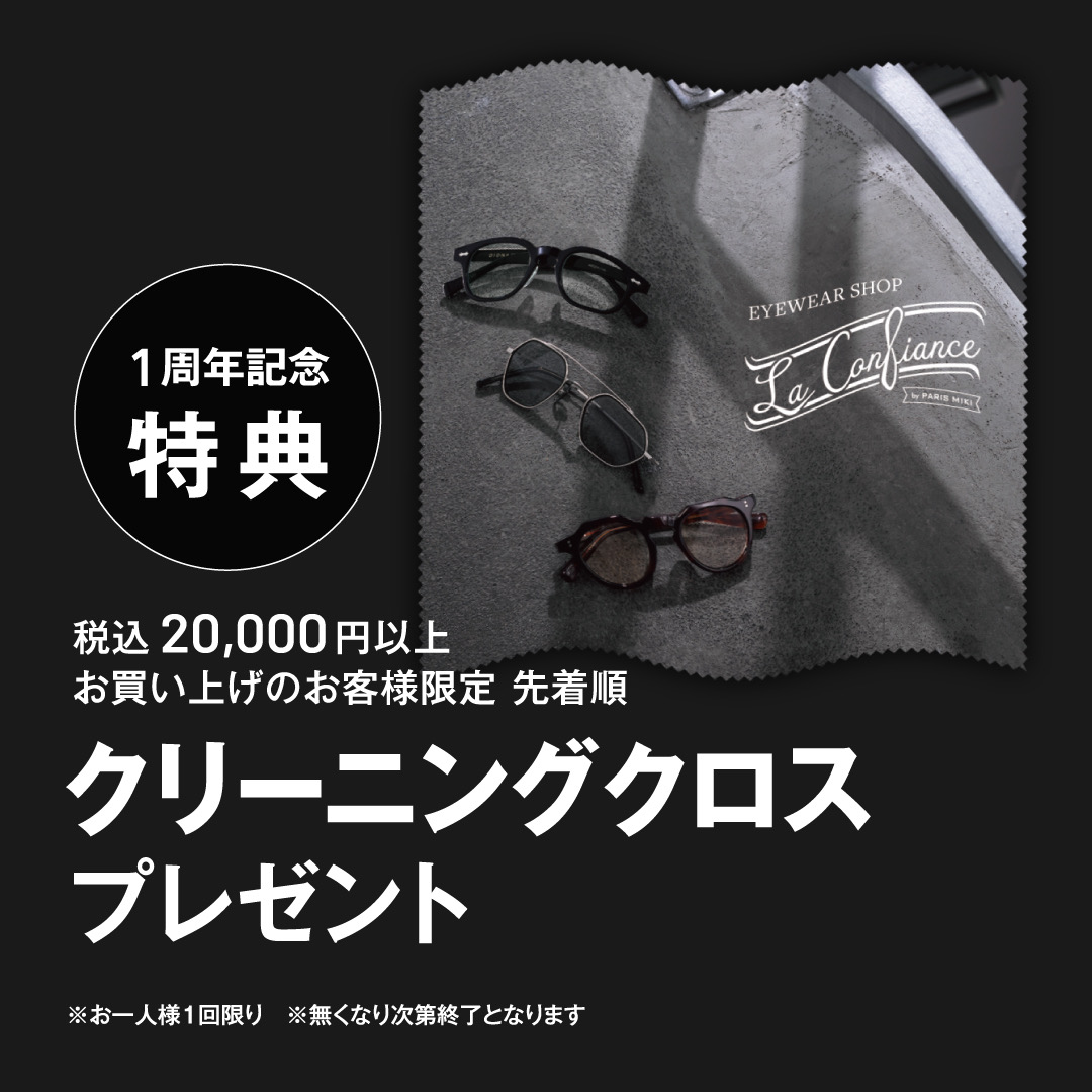 4/24(金)〜 20,000円(税込)以上のご購入で、 オリジナル大判メガネ拭きプレゼントをご用意しております ※無くなり次第終了
